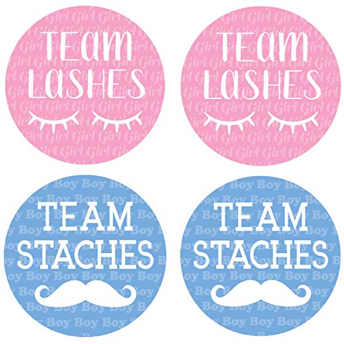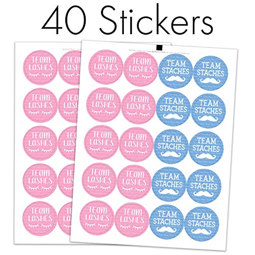 40 STICKERS: baby gender reveal birthday party team stickers made to compare gender reveal lashes or staches decorations.